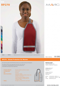 MAVIGin rintasuoja on erityisesti suunniteltu suojaamaan potilaiden rintoja mammografisten kuvausten aikana. Kuten kaikki suojamme, RP270 tarjoaa tarpeellisen ja riittävän suojan ja helpon puettavuuden.