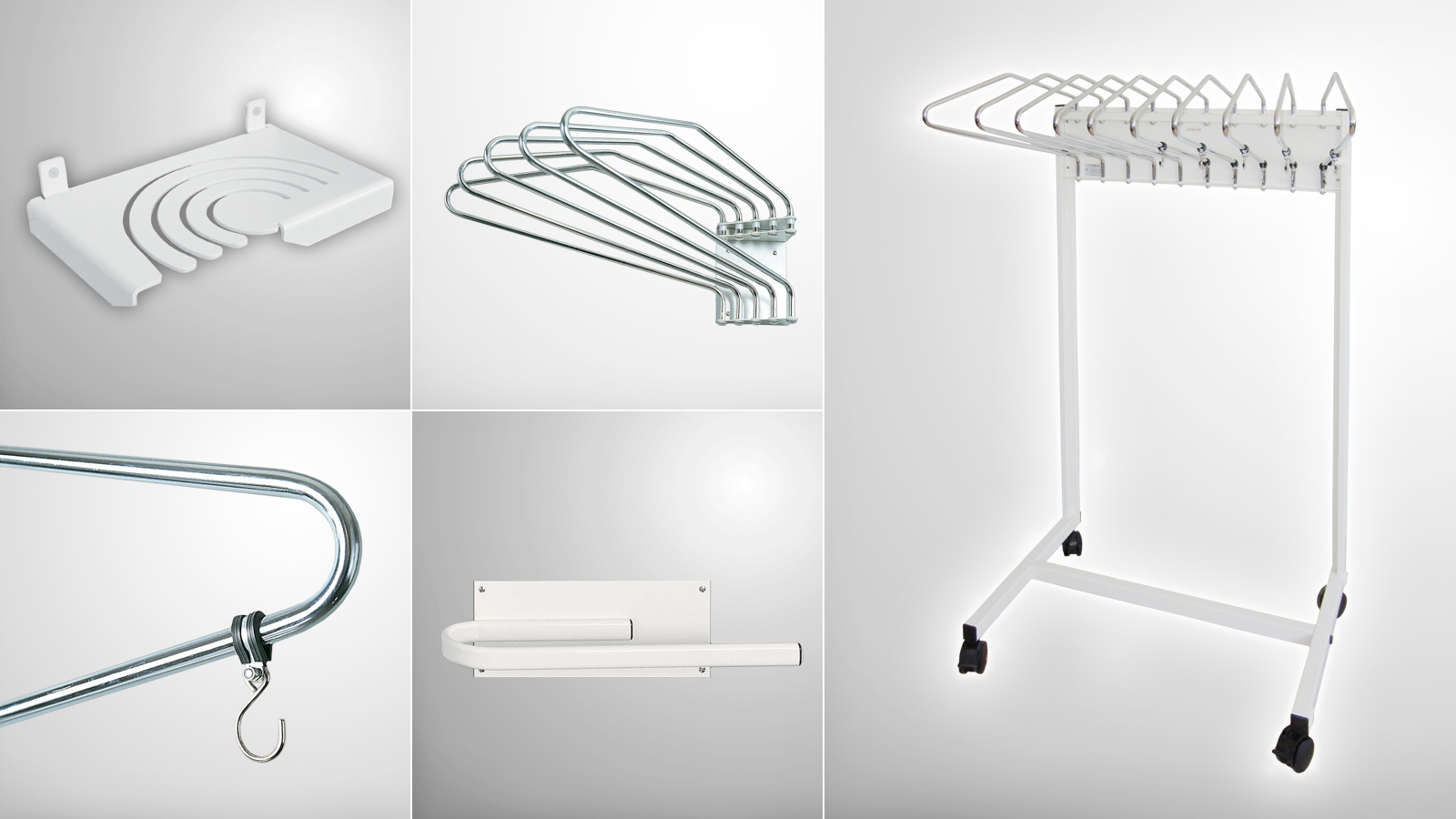 Seinäjärjestelmä Seinäjärjestelmä jopa 3 sädesuojavaatteen optimaaliseen säilytykseen, Kääntyy joko oikealle...
